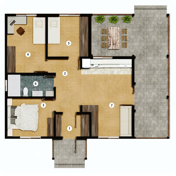 A házak alakja egyszerű, mégis karakteres – könnyen illeszkedik vidéki tájba, nyaralóövezetbe vagy kertvárosi környezetbe. Az elrendezés minden négyzetmétert kihasznál: tágas nappali, világos hálók, igény szerint dolgozósarok, galéria vagy tároló – rugalmas, mint az élet maga.
